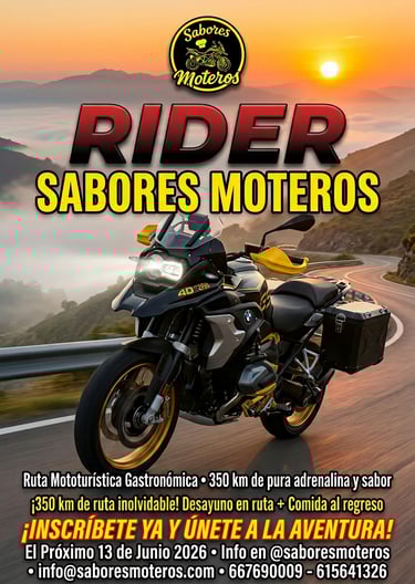 El próximo 12 y 13 de junio de 2026, llega a Granada la I Rider Edition Sabores Moteros, un evento diseñado para auténticos amantes de la carretera, las curvas y la buena gastronomía.